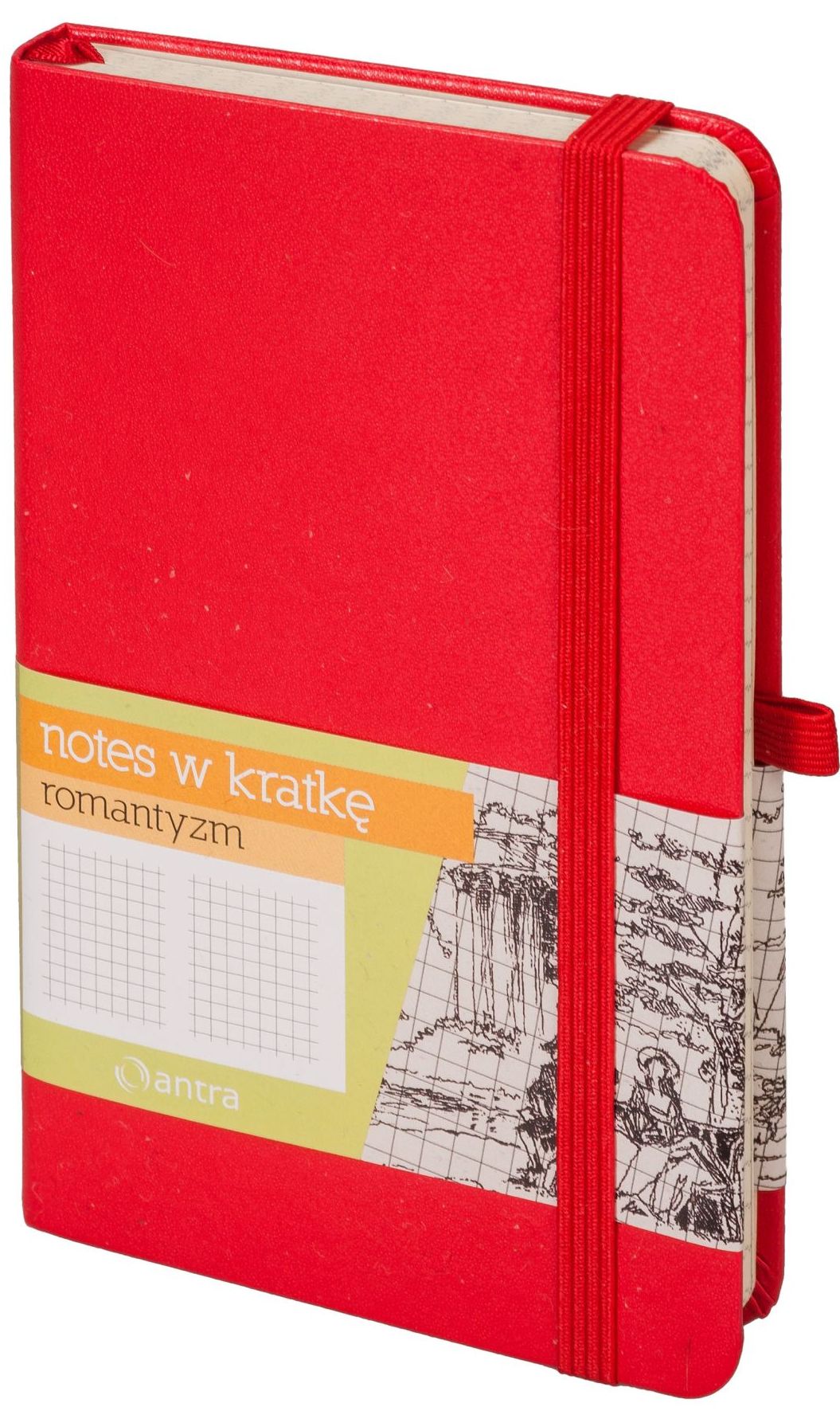 Opakowanie Notes A6 kieszonkowy z gumką Romantyzm kratka czerwony