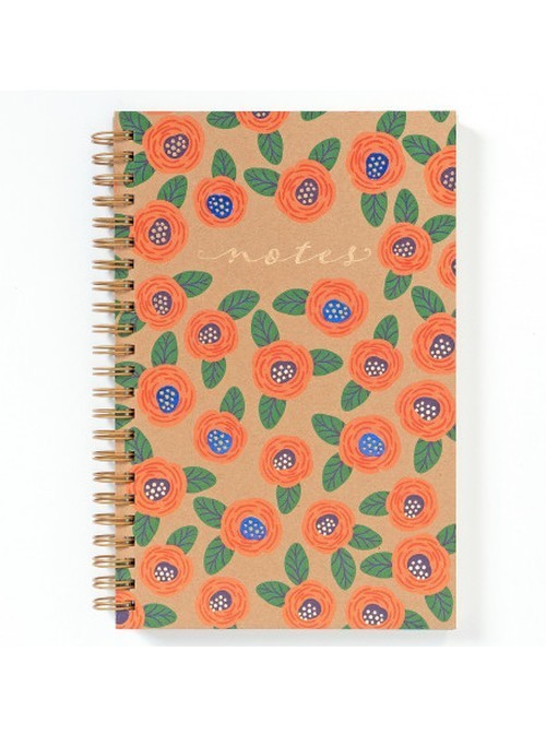 Ozdobny notes z grafiką w drobne kwiaty. Spiralowany notes posiada 192 strony kremowego papieru o gramaturze 70g. Całość okryta grubą okładką z naturalnej tektury 650g z recyklingu.