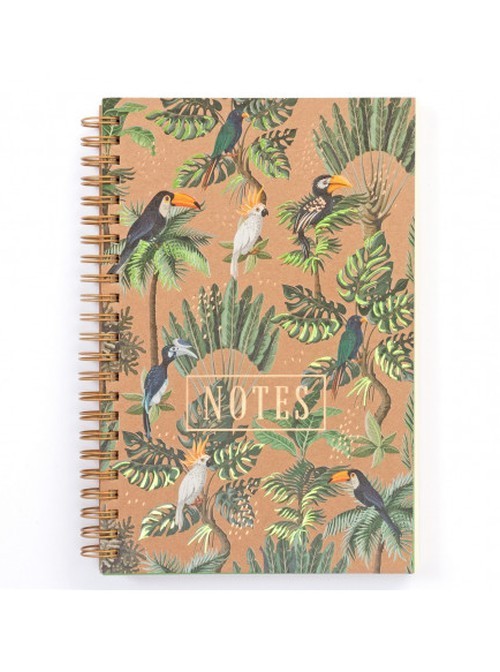 Ekskluzywny notes ekologiczny z grafiką inspirowaną lasem tropikalnym. 192-stronicowy, obszerny notes na spirali, łączy w sobie okładkę z tektury z recyklingu 650g z papierem kremowym o gramaturze 70g.