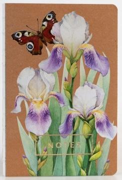 Okładka notesu z grafiką w biały irys syberyjski oraz tłoczony na złoto napis tworzą piękne zestawienie z naturalną tekturą.