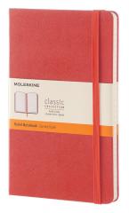 Notes marki Moleskine Classic w rozmiarze Large (13x21cm) w linie. Zamykany na gumkę. Okładka twarda w kolorze koral oranż.