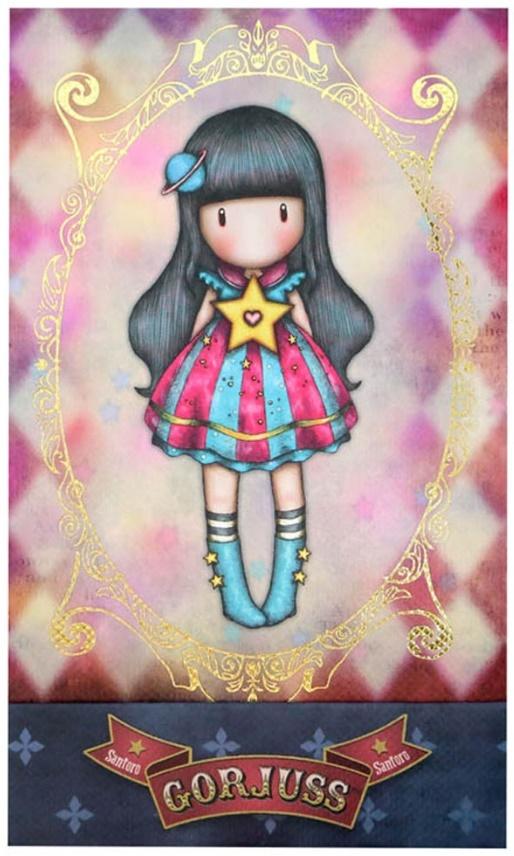 Ozdobiony eleganckim złoceniem i wizerunkiem dziewczynki Gorjuss.
