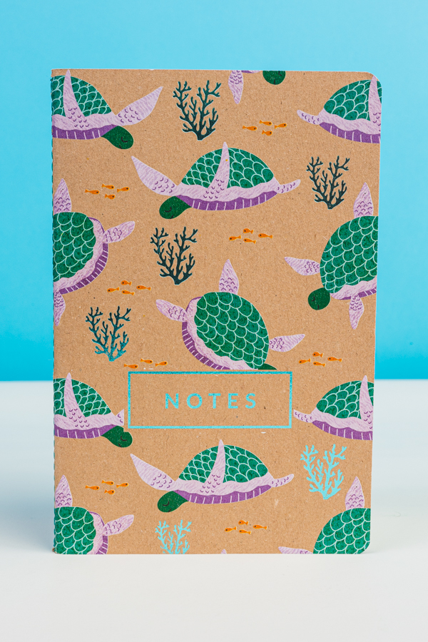 Okładki notesu z motywami morskimi oraz subtelnie tłoczone elementy grafiki i napisy, tworzą piękne zestawienie z naturalną tekturą. Kolor nici, pierwszej i ostatniej strony notesu uzupełniają stylowy wygląd notesu.