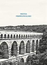 Notes podróżny Zeszytów Literackich do prowadzenia prywatnych zapisków, ilustrowany zdjęciami i fragmentami szkiców Adama Wodnickiego o Prowansji. Strony numerowane notes z indeksem ułatwiającym porządkowanie dokonanych wpisów.