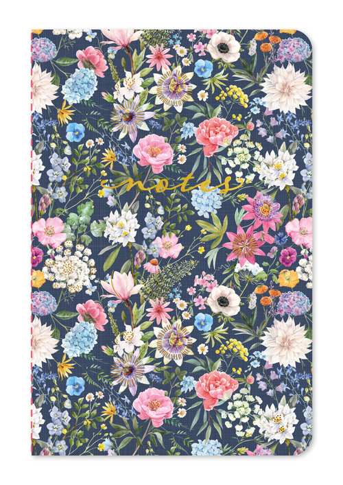 Romantyczna seria notesów z okładką zdobioną ilustracją kwiatową oraz subtelnie tłoczoną złotą folią.