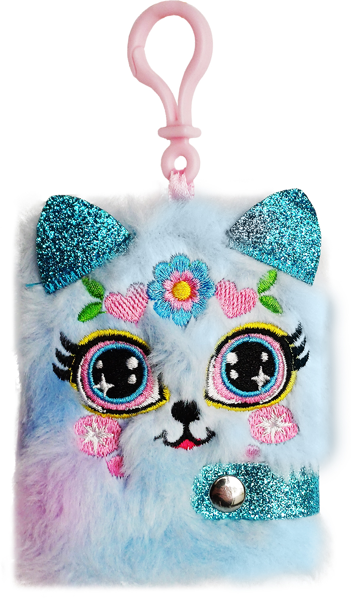 Futrzany, wesoły notesik w formie breloczka to idealne miejsce na ważne zapiski. Niewielki rozmiar 10 x 8 cm gwarantuje, że zmieści się w każdej torebce, można go również przypiąć do plecaka. Notes zapinany jest na zatrzask.