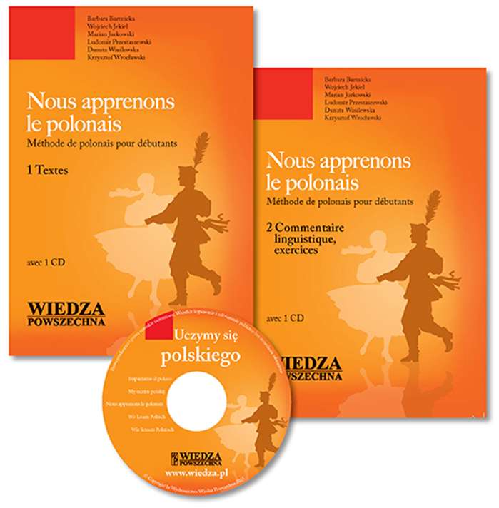 Wersja podręcznika Uczymy się polskiego dla odbiorcy francuskojęzycznego.Tom 1 - 50 lekcji, teksty i dialogi ze słowniczkami, wiersze, dowcipy, pieśni i piosenki z nutami, indeks 2000 wyrazów. Podstawowe słownictwo i struktury gramatyczne.Tom 2 - omówienie materiału gramatycznego, wskazówki metodyczne, komentarze gramatyczne i ćwiczenia do poszczególnych lekcji z t. 1, klucz do ćwiczeń.Dialogi, wiersze, piosenki nagrane na MP3 Polskich Nagrań /dołączonych do podręcznika/.