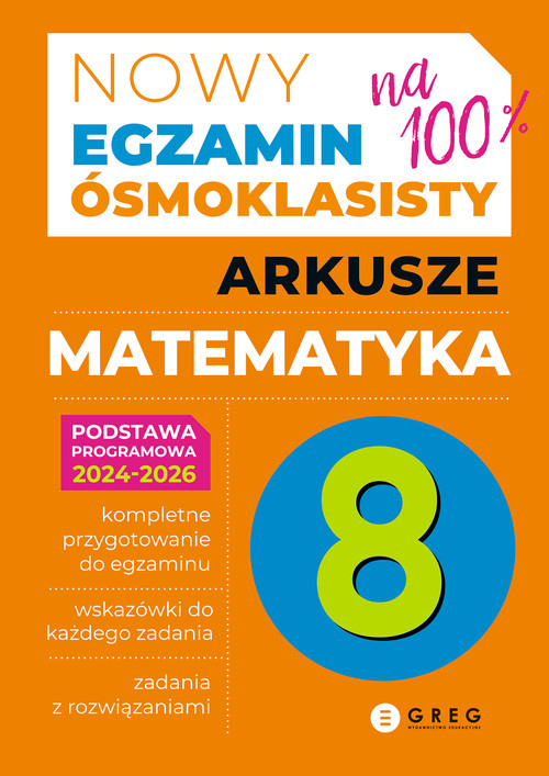 Zdaj z sukcesem egzamin ósmoklasisty z matematyki z nowymi arkuszami od Wydawnictwa GREG! Starannie opracowane arkusze obejmują pełen zakres materiału, który jest wymagany na egzaminie. Dzięki nim przećwiczysz wszystkie typy zadań, jakie mogą pojawić się w arkuszu.