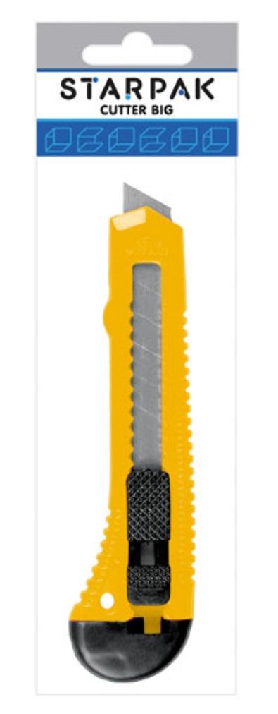 Ergonomiczny nóż biurowy z łamanym ostrzem z nierdzewnej stali. Zabezpieczony przyciskiem blokującym pozycję ostrza.