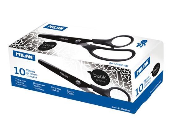 Nożyczki szkolne z plastikowymi uchwytami. Długość 13,4 cm. Ostrza z nierdzewnej stali zaokrąglone na końcach. Dostępne w 4 kolorach (mix).