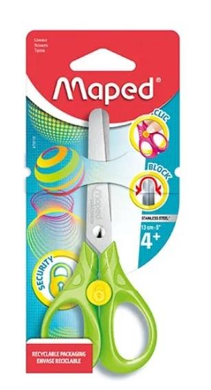Nożyczki SECURITY z unikalnym systemem blokady ostrzy zwiększającym bezpieczeństwo użytkowania. Ergonomiczne uchwyty 3D w kolorze zielonym.