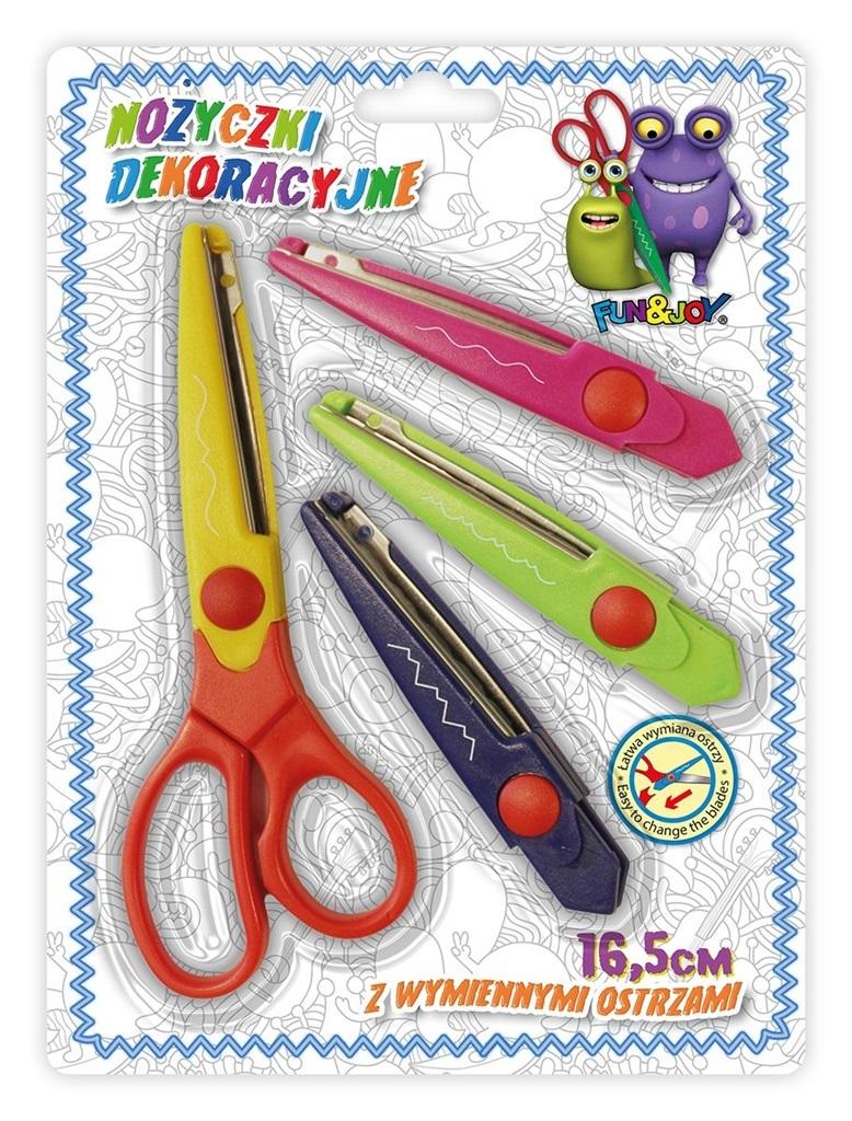 Nożyczki dekoracyjne 16 cm z wymiennymi ostrzami 4 w 1.
