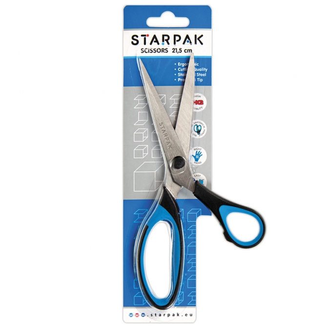 Nożyczki z doskonałym ostrzem z nierdzewnej stali najwyższej jakości. Ergonomiczna, bardzo wygodna gumowana rączka zapewnia precyzję i optymalizuje siłę używaną do cięcia. Chętnie kupowane zarówno do biura, jak i domu. Pakowane w atrakcyjne blistry.