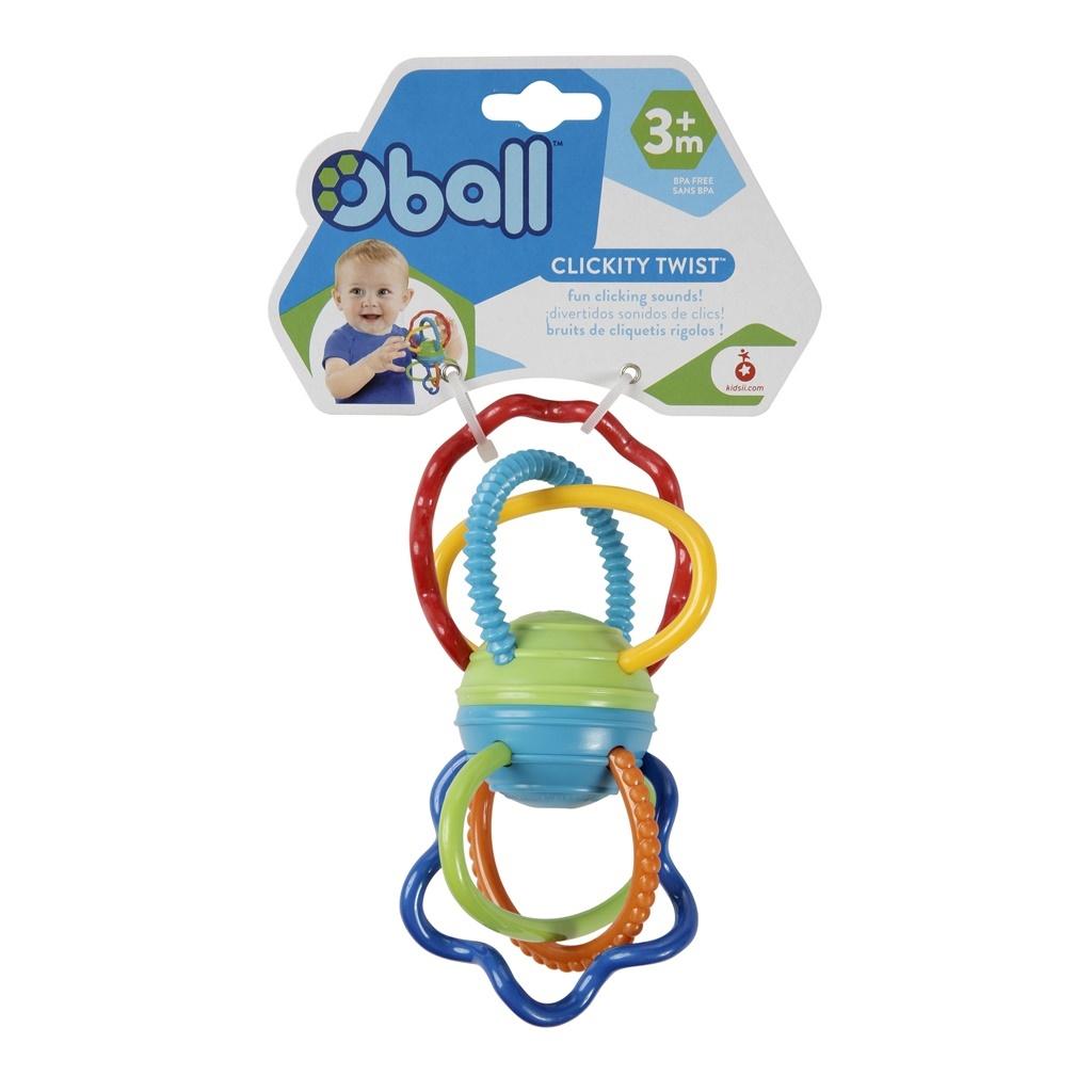 Oball Klik Klik, który podczas zabawy wydaje zabawny terkoczący dźwięk. Miękkie elastyczne linki są łatwe do uchwycenia przez małe rączki. Zróżnicowane struktury "ramion" przyniosą ukojenie ząbkującemu maluszkowi. Żywe kolory oraz zróżnicowanie struktur rozwijają zmysły wzroku i dotyku dziecka. Dodatkowo zabawka rozwija zdolności motoryczne oraz dotyk dziecka.