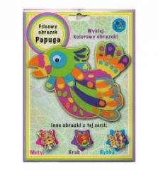 Zestaw zawiera: kartonowy obrazek, kolorowe, samoprzylepne kawałki filcu oraz tekturową podstawkę
