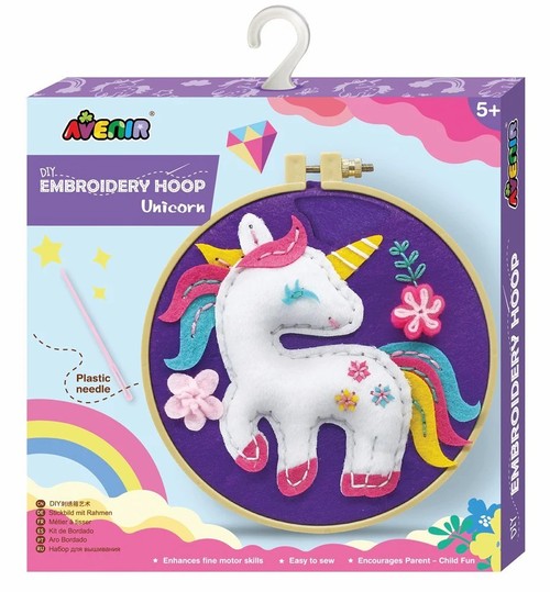 Wyhaftuj swojego własnego słodkiego Jednorożca. Ten wspaniały zestaw zawiera wszystko, czego mały artysta potrzebuje do wykonania swojego pierwszego harfowanego dzieła. Haftowanie to czynność rozwijająca sprawność manualną i koordynację oko-ręka, a także wyciszająca. Zestaw z uroczym mitycznym zwierzątkiem to świetny prezent dla kreatywnego dziecka. W zestawe: tamborek (średnica 16cm), kawałki bawełny, włóknina, mulina, bezpieczna igła. Wiek: 5+
