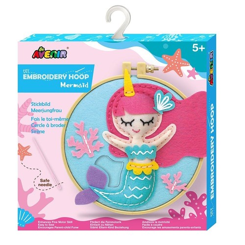 Wyhaftuj swoją własną słodką Syrenkę. Ten wspaniały zestaw zawiera wszystko, czego mały artysta lub artystka potrzebuje do wykonania swojego pierwszego haftowanego dzieła. Haftowanie to czynność rozwijająca sprawność manualną i koordynację oko-ręka, a także wyciszająca.
