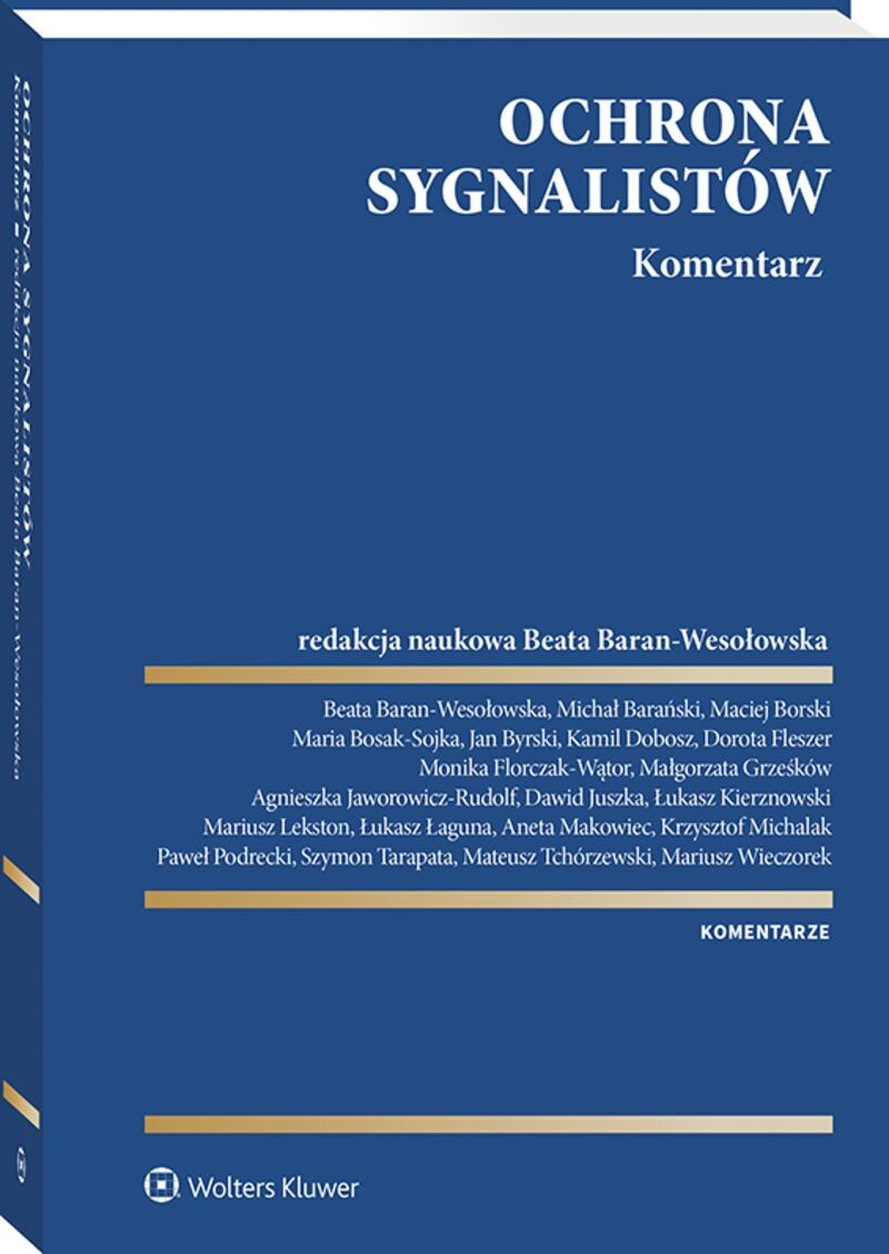 W komentarzu omówiono nowo uchwaloną ustawę o ochronie sygnalistów, której przepisy mają istotny wpływ na funkcjonowanie zarówno sektora prywatnego, jak i instytucji publicznych. Publikacja zawiera szczegółowe omówienie aspektu podmiotowego ustawy, analizę obszarów, w których możliwe jest zgłaszanie nieprawidłowości (np: kwestii ochrony środowiska, zdrowia publicznego, bezpieczeństwa systemów teleinfor matycznych), obowiązków pracodawców, procedur zgłaszania nieprawidłowości, a także mechanizmów ochrony sygnalistów oraz sankcji za ich naruszenie. Książka została napisana przez interdyscyplinarny zespół autorów, wśród których są pracownicy naukowi, sędziowie, radcy prawni, adwokaci, specjaliści compliance, a także menedżerowie. Autorzy nie tylko analizują treść ustawy, lecz także omawiają jej kontekst historyczny i uwarunkowania społeczne. Dokonują analizy orzecznictwa i podają przykłady z praktyki. Opracowanie jest źródłem wiedzy zarówno dla prawników świadczących usługi podmiotom ze sfery prawa prywatnego (w tym in-house'om), jak i dla specjalistów compliance, ekspertów z zakresu HR oraz audytu wewnętrznego. Zainteresuje pracowników szeroko rozumianego sektora publicznego, w tym organów naczelnych i centralnych oraz samorządu terytorialnego. Będzie pomocne każdemu, kto zajmuje się zgłaszaniem nieprawidłowości - whistlebowlingiem. "Wysoko należy ocenić warstwę merytoryczną Komentarza. Jego Autorzy postawili sobie za cel wykorzystanie w prowadzonych rozważaniach (w możliwie obszernym ujęciu) dorobku doktryny oraz (na ile było to możliwe) także judykatury. Można uznać, że wskazany cel zrealizowali. W wielu kwestiach przedstawili również własne poglądy i postulaty, co zdecydowanie podnosi walory opracowania. () Komentarz jest bez wątpienia przydatny, zwłaszcza dla praktyki obrotu prawnego, gromadząc w jednym miejscu właściwie wszystko, co dotyczy ochrony prawnej sygnalistów. Komentarz jest też potrzebny nauce, jako istotny wkład w dyskusję nad kształtem ustawy o ochronie sygnalistów." dr hab. Jan Piątkowski, prof. UMK (fragment recenzji)
