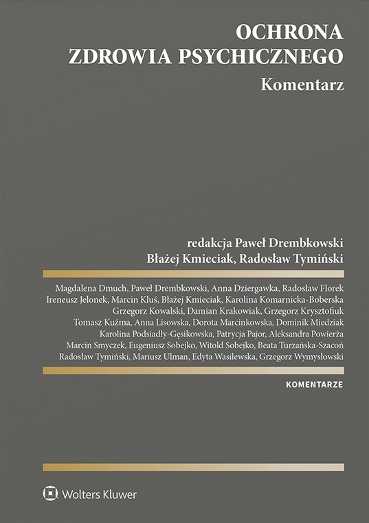 Komentarz szczegółowo omawia rozwiązania prawne zawarte w ustawie z 19 sierpnia 1994 r. o ochronie zdrowia psychicznego, uwzględniając szeroką praktykę orzeczniczą sądów polskich i Europejskiego Trybunału Praw Człowieka, a także wypowiedzi doktryny. Wiele miejsca poświecono m.in.: ochronie osób chorych i ich praw, zasadzie przymusowego leczenia, przyjęciu do szpitala psychiatrycznego lub do domu pomocy społecznej, postępowaniu przed sądem opiekuńczym i tajemnicy informacji o stanie zdrowia pacjenta oraz o postępowaniu leczniczym. Autorzy odpowiadają również na pytania wpływające od Policji i lekarzy do prawników izb lekarskich w sprawie stosowania środków przymusu. Książka przeznaczona jest dla przedstawicieli zawodów prawniczych: sędziów i prokuratorów oraz adwokatów i radców prawnych biorących udział w postępowaniach z udziałem osób z zaburzeniami psychicznymi lub ich dotyczących, a także pracowników naukowych zajmujących się komentowaną materią. Zainteresuje również lekarzy, w szczególności psychiatrów, psychologów klinicznych, seksuologów, oraz kierowników podmiotów leczniczych z zakresu psychiatrii.