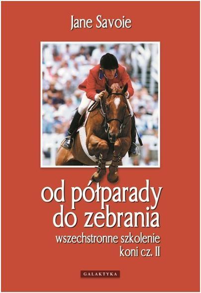 Jane Savoie od 1980 roku jest instruktorem ujeżdżenia, prowadzi wykłady i kursy dla jeźdźców, a także bierze udział w konkursach ujeżdżenia. W 1992 roku była rezerwową reprezentantką USA na olimpiadzie w Barcelonie w konkurencji ujeżdżenia. Podczas olimpiady w Atlancie w roku 1996 Jane była trenerem reprezentacji Kanady WKKW.Każdy, kto przeczytał pierwszą książkę Jane Savoie Wszechstronne szkolenie koni, z pewnością będzie chciał poznać jej kontynuację. Szczególnie polecam ją wszystkim, którym zależy na tym, by ich konie posiadły umiejętność poruszania się w zebraniu. Znakomita większość jeżdżących konno stara się, by ich konie chciały przyjmować pozycję zebraną. Nie wszystkim się to udaje. Jestem przekonany że po przeczytaniu tej książki wiele problemów rozwiąże się, a zebranie konia przestanie być czymś trudnym. Jane jest instruktorem praktykiem, czynnym jeźdźcem, a wszystko o czym pisze, sprawdziła sama. Jestem pewien, że lektura tej pozycji sprawi iż, dość tajemnicza dla wielu półparada stanie się czymś prostym i oczywistym, a uzyskanie od konia pozycji zebranej będzie o wiele łatwiejsze. Studiowanie książki powinno być przyjemnością dla czytających, a w efekcie także przynieść przyjemność i radość z udanych treningów ich koniom.Druga część książki Wszechstronne szkolenie koni, kontynuuje tematy podjęte w części pierwszej. To książka prosta w odbiorze, czytelna i innowacyjna. Autorka tłumaczy zagadnienia bardziej zaawansowanego treningu ujeżdżeniowego, ale omawia też podstawowe zasady. Wspaniałe zdjęcia ilustrują zarówno prawidłowe, jak i nieprawidłowe wykonanie ćwiczeń oraz zastosowanie pomocy jeździeckich. Jane Savoie przekazuje jeźdźcom łatwe do zastosowania instrukcje pokazujące, jak radzić sobie z problemami, a także jak rozpoznać, kiedy koń jest gotowy na wprowadzanie kolejnych ćwiczeń. Lektura tej książki ułatwia lepsze zrozumienie mechanizmów jeździeckich. Nieważne, co jeździsz - ujeżdżenie, western, skoki czy WKKW. Zastosowanie technik i ćwiczeń proponowanych przez Jane Savoie sprawi, że osiągniesz harmonię z koniem, nauczysz się go lepiej kontrolować, a co za tym idzie, będziesz czerpać więcej przyjemności z jeździectwa. Obie książki Jane są wspaniałym źródłem informacji dla trenerów, jeźdźców i instruktorów jeździeckich.
