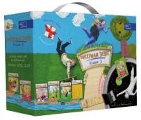 Odkrywam siebie. Ja i moja szkoła pakiet książek dla klasy pierwszej szkoły podstawowej. Wydany został przez wydawnictwo MAC Edukacja. Podręczniki wchodzące w skład pakietu realizują założenia nowej podstawy programowej. Zostały napisane przez pedagogów z wieloletnim stażem - Jolantę Faliszewską, Wiesławę Żabę-Żabińską oraz Grażynę Lech.Zestaw do klay pierwszej został podzielony na 10 części, po jednej na każdy miesiąc, tak aby dzieci nie miały przeciążonych tornistrów.W skład pakietu wchodzą: Książki dla ucznia (część 1 - 10 ): uwzględniją najnowszą wiedzę - psychologiczną, pedagogiczną i dydaktyczną - dotyczącą rozwoju, wychowania i edukacji dzieci w wieku 6-9 lat bazują na założeniach teorii inteligencji wielorakich Howarda Gardnera tematyka bloków ma za zadanie stymulowanie rozwoju różnych inteligencji i stwarzanie okazji do przeżywania przez dzieci ""zdarzeń krystalizujących"", czyli takich, które pozwolą im odkrywać własne predyspozycje przygotowuje nie tylko do szkolnego uczenia się, ale także do sprawnego funkcjonowania poza formalnym kształceniem pomagją kształcić umiejętności rozwiązywania problemów, które są charakterystyczne dla danego środowiska zgodnie z wymaganiami podstawy programowej, w formie drukowanej zawierają tylko niezbędne ćwiczenia.Zeszyty do zadania domowe(10 części): zawierają ćwiczenia utrwalające umiejętność czytania, pisania i liczenia zadania przewidziane są na cztery dni w tygodniu zeszyty wzbogacono o wartościowe teksty do czytania dzieciom przez rodziców oraz porady dotyczące wychowania i edukacji dzieci zeszyty zadań domowych mogą być dla nauczyciela narzędziem do diagnozy sytuacji domowej dziecka.Wycinanki(2 części): zawierają pomoce dydaktyczne do wykorzystania przez dzieci podczas zajęć oraz rozmaite zabawki i gry zabawki wykorzystywane są podczas zajęć matematycznych, przyrodniczych, społecznych i językowych.Zeszyty do kaligrafia(2 części) to dwa dodatkowe zeszyty z ćwiczeniami w pisaniu (na pierwszy i drugi semestr). Celem ćwiczeń jest rozwijanie umiejętności czytania, przepisywanie tekstu pisanego i drukowanego, układanie wyrazów z sylab, układanie zdań z rozsypanek wyrazowych, porządkowanie zdań we właściwej kolejności, pisanie z pamięci.Ćwiczenia w rysowaniu: umożliwią dziecku rozwijanie sprawności ręki: palców, nadgarstka, przedramienia, barku cykl ćwiczeń rozpoczynają szlaczki zgeometryzowane, złożone z linii pionowych, poziomych i ukośnych, a więc takich, które są łatwiejsze dla sześciolatków stopniowo wprowadzane są linie płynne: laseczki, łuki, pętelki proponowane szlaczki służą ozdabianiu bombek, talerzyków, wazonów itp., by nadać ćwiczeniom formę atrakcyjną dla dzieci, mają je zachęcić do podjęcia wysiłku związanego z przygotowaniem do nauki pisania.Elementarz małego informatyka. Podręcznik z ćwiczeniami i płytą CD: przeznaczony dla dzieci, które rozpoczynają przygodę z komputerem zawiera podstawowe informacje teoretyczne oraz ćwiczenia, które rozwijają umiejętności zdobyte podczas zajęć.Całość publikacjizapakowana jest w funkcjonalny box, który dzięki plastikowej rączce ułatwia przenoszenie książek oraz innych pomocy. Może być też doskonałym miejscem na przechowywanie prac wykonywanych w szkole oraz wszelkich skarbów dziecka.