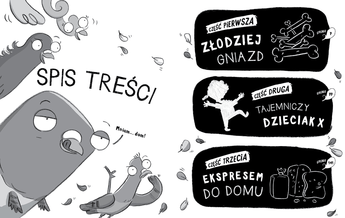 ODLOTOWE GOŁĘBIE muszą wziąć sprawy w swoje dzioby. Skradziono gniazdo sępa Brodacza i jeśli nie zostanie odnalezione, sęp PRZEKLNIE całą drużynę. Podły złoczyńca zahipnotyzował Papilotkę podczas pojedynku na spojrzenia. A w dodatku ktoś porwał rodzinę Ekspresa i przetrzymuje ich jako zakładników. Czy to tylko mała zapowiedź nadchodzącej katastrofy KLUBU ANTYGOŁĘBI???