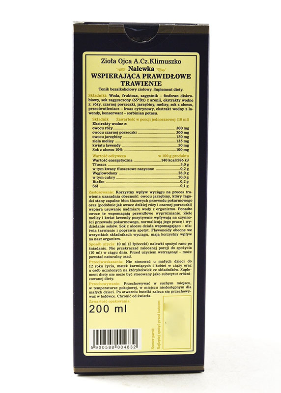 Produkt przyjazny dla osób z cukrzycą typu I i II. Składniki aktywne preparatu są naturalne i nie posiadają działań ubocznych. Korzystny wpływ wyciągu na proces trawienia uzasadnia obecność: owocu jarzebiny, który łagodzi stany zapalne błon śluzowych przewodu pokarmowgo oraz (podobnie jak owoce dzikiej róży i czarnej porzeczki) wspiera usuwanie nadmiaru wody z organizmu. Ponadto owoce te wspomagają prawidłowe wypróżnianie. Ziele melisy i kwiat lawendy pozytywnie pozytywnie wpływają na czynności przewodu pokarmowego, normalizują jego pracę i wydzielanie soków. Sok z aloesu działa wspomagająco- ułatwia trawienie i poprawia apetyt. Flawonoidy obecne we wszystkich składnikach wyciągu mają korzystny wpływ na nasz organizm.