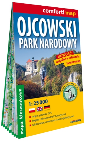 Ostańce skalne o fantazyjnych kształtach, malownicze wąwozy i tajemnicze jaskinie – to właśnie niektóre z atrakcji Ojcowskiego Parku Narodowego. Można tu zarówno powędrować Szlakiem Orlich Gniazd, jak i wybrać się na rodzinny spacer wzdłuż biegu Prądnika. Laminowana mapa turystyczna opracowana we współpracy z Ojcowskim Parkiem Narodowym pomoże zaplanować miły odpoczynek. Obejmuje ona Ojcowski Park Narodowy oraz wschodnią część Parku Krajobrazowego Dolinki Krakowskie.