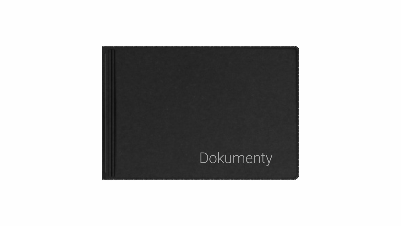 Okładka wykonana ze spienianej folii PVC w kolorze czarnym, wewnątrz usztywniona tekturą. Wyposażona w 4 kieszonki i 2 kieszenie na wewnętrznej stronie okładek. Okładka pozioma w wygodnym, kieszonkowym formacie.