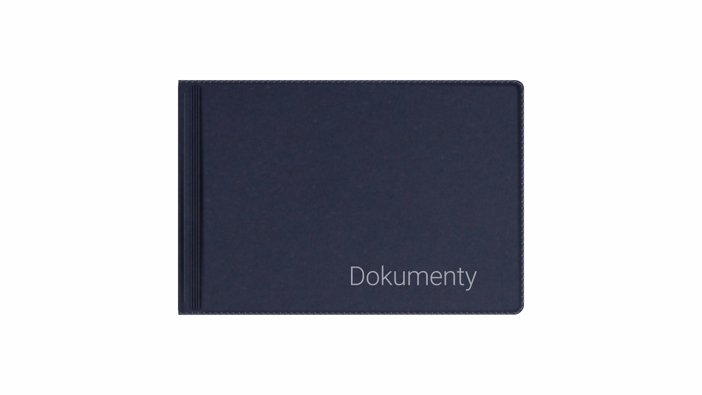 Okładka wykonana ze spienianej folii PVC w kolorze czarnym, wewnątrz usztywniona tekturą. Wyposażona w 4 kieszonki i 2 kieszenie na wewnętrznej stronie okładek. Okładka pozioma w wygodnym, kieszonkowym formacie.