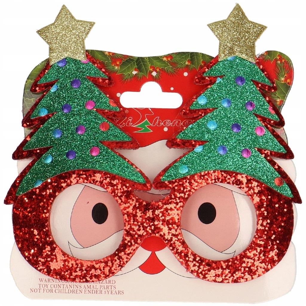 Efektowne okulary z choinkami. Starannie wykonane. Wszystkie elementy dekoracyjne wykonane z materiałów brokatowych. Bardzo efektowny element, który wprowadzi świąteczny klimat.