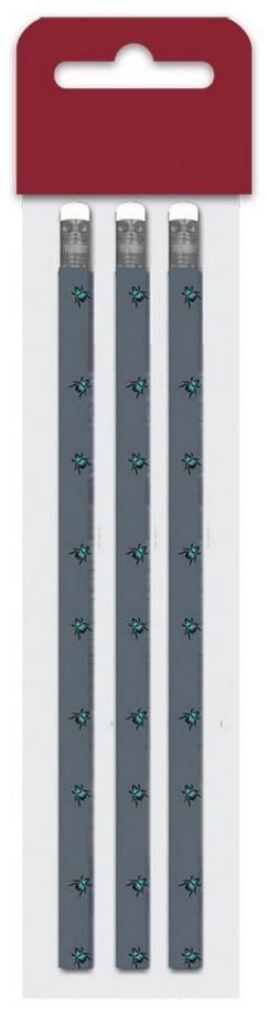 OŁÓWEK drewniany 3szt. FASHION muchy, z gumką, twardość HB