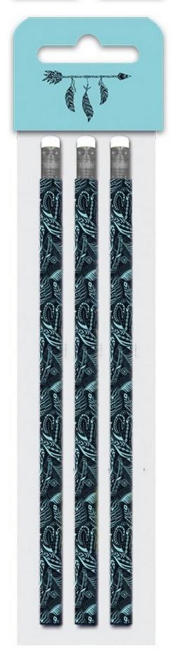 Ołówek drewniany 3szt. Fashion piórko, z gumką, twardość HB.