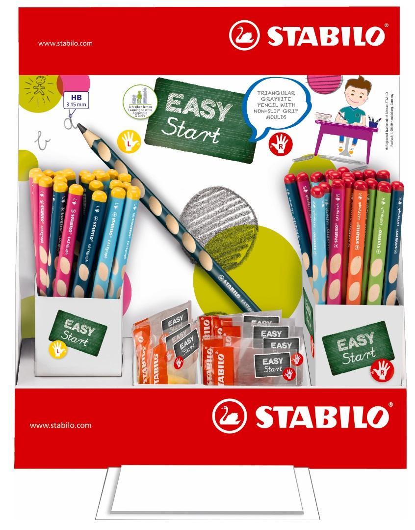 Ołówki STABILO EASYgraph dla praworęcznych. Display zawiera 72 szt ołówków - mix kolorów. Twardość HB. Ergonomiczne ołówki o trójkątnym przekroju zapewniają wygodny chwyt podczas rysowania. Dostępne są w 2 wersjach: dla osób prawo- lub leworęcznych w kilku odcieniach kolorystycznych. Specjalny kod kolorystyczny umożliwiający rozpoznanie wersji: żółty kolor końcówki dla leworęcznych, czerwony dla praworęcznych. Specjalny lakier zabezpieczający przed brudzeniem strefy uchwytu. Nawet po zatemperowaniu palce znajdują wygodną pozycję do trzymania. Specjalne miejsce na wpisanie imienia. Dostępne twardości: HB i 2B. Średnica grafitu 3,15 mm. Posiadają certyfikat PEFC produkt ekologiczny. Produkty z serii EASYergonomics experts zostały wyróżnion eprzez rodziców i otrzymały oznaczenie ""NAGRODA RODZICÓW 2014"".