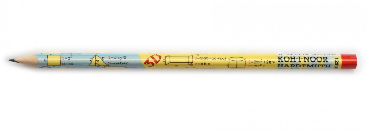 Ołówki o twardości HB w trzech szatach graficznych: puzzle, tabliczka mnożenia oraz figury geometryczne z wzorami matematycznymi.