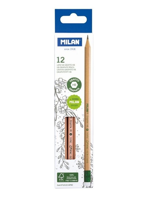 Ołówki sześciokątne HB z gumką o średnicy grafitu: 2,2 mm. Grafit HB jest średnio twardy, dzięki czemu nadaje się do pisania i rysowania. Naturalne drewniane wykończenie. Posiadają unikalny system Lead Protection System (LPS), który zwiększa odporność grafitu na złamania poprzez przyklejenie go do drewna. Drewno jest wytrzymałe i miękkie umożliwiając łatwe temperowanie. Drewno w 100% pochodzi ze zrównoważonych plantacji z certyfikatem FSC(R) (Forest Stewardship Council). Wymiary ołówka: 19 x 0,7 cm.