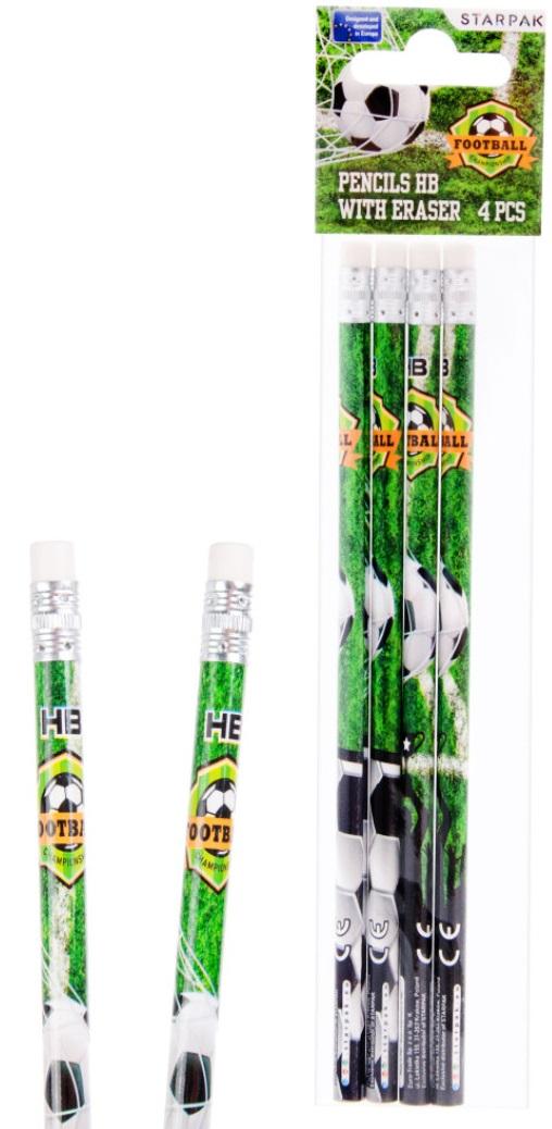 Ołówki uniwersalnej twardości HB z miękką dobrze wymazującą gumką. 4 sztuki.