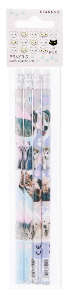 Zestaw 4 ołówków z gumką z kolekcji Starpak z licencją Cuties. Każdy ołówek zdobiony kolorową grafiką z ulubionymi bohaterami. Wykonany z trwałego drewna, zapewnia komfort rysowania i pisania. Ołówek nie łamie się podczas strugania a gumka nie brudzi.