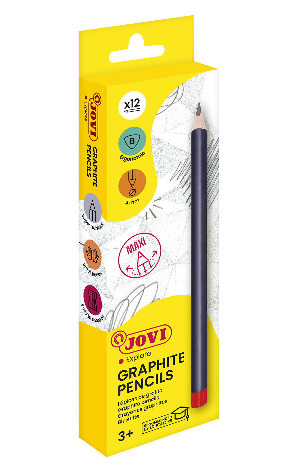Ołówki trójkątne Maxi B, wygodne w użyciu dzięki swemu kształtowi. Niełamniwe dzieki wklejonemu wkładowi, nie wypadają przy temperowaniu. Bardzo wydajne. długość 175 mm, średnica 10 mm. 12 sztuk w pudełku.