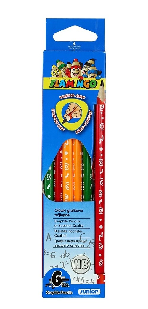trójkątny, ergonomiczny kształt; doskonałej jakości grafit; twardość HB; w opakowaniu 6 sztuk