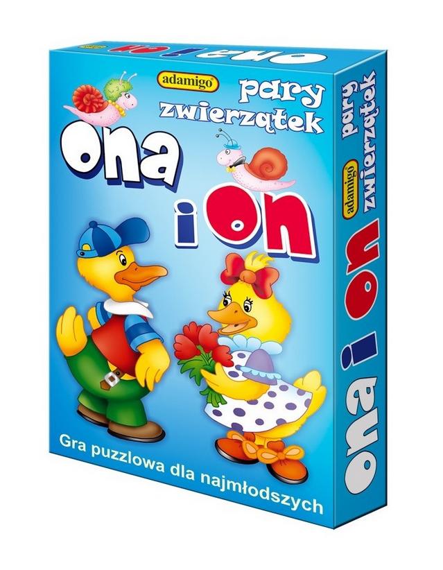 Zestaw „Ona i on” składa się z 12 dwuelementowych puzzli (12 par zwierząt). Ponadto dzięki tej nieskomplikowanej zabawie Twoje dziecko ćwiczy zdolność analizy obrazu, a także uczy się rozróżniania płci.