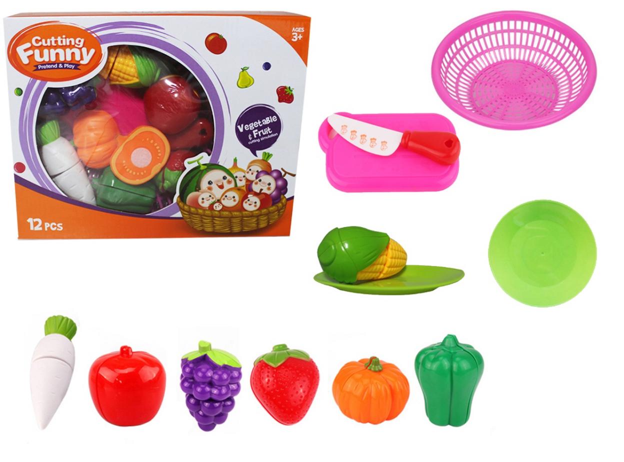 Plastikowe owoce i warzywa na rzepy do krojenia. Zestaw 12 sztuk.