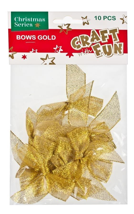 Opakowanie zawiera: 10 sztuk złotych, materiałowych kokard.