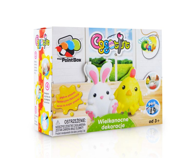Piękne pisanki Fantazyjne dekoracje Zawartość: 4 farbujące tabletki 1 pędzelek 1 pompka 1 pasek ścierny 3 słomki 2 kolorowe modeliny 1 duża, biała modelina 1 blister do formowania 1 klej 1 instrukcja obsługi