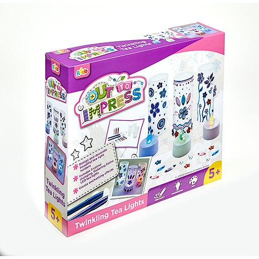 Zestaw do zdobienia. Zawiera 3 kolorowe światełka, 3 osłonki, koraliki do zdobienia, 3 kleje z brokatem, 2 kolorowe pisaki oraz instrukcję.