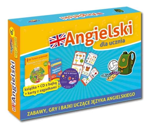 Pakiet Angielski dla ucznia 6+ to zestaw edukacyjny dla dzieci, który zapewnia aktywną naukę języka. Składa się z: książki z zagadkami, słuchowiska "Kot w butach" oraz zestawu kart obrazkowych z quizami i łamigłówkami. Pakiet został specjalnie opracowany tak, aby dziecko podczas zabawy aktywnie uczyło się języka angielskiego, doskonaliło rozumienie ze słuchu oraz wymowę.