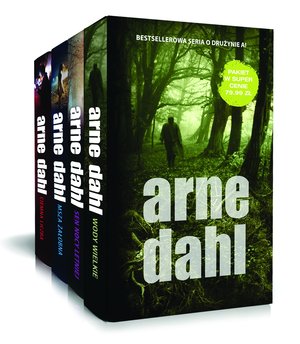 Trzymająca w napięciu seria o drużynie A - jednostce specjalnej szwedzkiej policji do spraw przestępczości międzynarodowej. Kolejne tomy błyskotliwych powieści kryminalnych Arnego Dahla. Ostry język i pełne ironii poczucie humoru to znaki rozpoznawcze nagradzanego autora! Arne Dahl - pisarz, krytyk i redaktor, jeden z najwybitniejszych autorów kryminałów w Szwecji. Skład pakietu: Wody wielkie Dag Lundmark, policjant i były kochanek komisarz Kerstin Holm, zostaje oskarżony o zastrzelenie afrykańskiego uchodźcy. Lundmark twierdzi, że działał w obronie koniecznej. Ze śledztwa wynika, że Afrykanin był szpiegiem w pewnej międzynarodowej firmie farmaceutycznej. Czy dlatego został zabity? Kerstin postanawia rozpocząć pogoń za mordercą... Sen nocy letniej Zbliża się noc świętojańska, czas urlopów. Jednak Drużynę A czeka intensywny tydzień. Jednemu z członków zostaje zarzucone dawno popełnione przestępstwo, a Sztokholm nawiedza seria tajemniczych zdarzeń. Pracująca w Szwecji polska pielęgniarka ginie od uderzenia siekierą, dyrektor programowy stacji telewizyjnej zostaje zastrzelony po premierze pilotażowego odcinka nowego reality-show, z głębin Riddarfjärden wypływa trup. Cała sprawa dotyka bezpośrednio policjantów z jednostki specjalnej. Msza żałobna Była żona członka specjalnej jednostki policyjnej do spraw przestępczości międzynarodowej, znanej jako Drużyna A wchodzi do banku, aby załatwić kilka spraw. To preludium do ciągu niezwykłych wydarzeń; sprawy zakładników, zagadki tajemniczego biurka, zbioru skamielin, które prowadzą do najbardziej dramatycznych perturbacji drugiej wojny światowej i zimnej wojny lat powojennych. Ciemna liczba W lasach Angermanland w północnej Szwecji znika czternastoletnia Emily. Jedyną wskazówką dla Kerstin Holm ze sztokholmskiej drużyny A są samochody na numerach rejestracyjnych z jednego z krajów nadbałtyckich - jak również informacje, że w okolicy mieszka trzech skazanych wcześniej pedofilów. Sprawa staje się jeszcze poważniejsza, gdy znaleziony zostaje martwy mężczyzna z poderżniętym gardłem. Narzędzie zbrodni to struna fortepianu. Wkrótce w Sztokholmie znalezione zostaje drugie ciało z taką samą raną. Ślady prowadzą do internetu, w sam środek perfidnej walki dobra ze złem, w której młoda Emily odgrywa szczególną rolę.