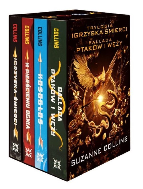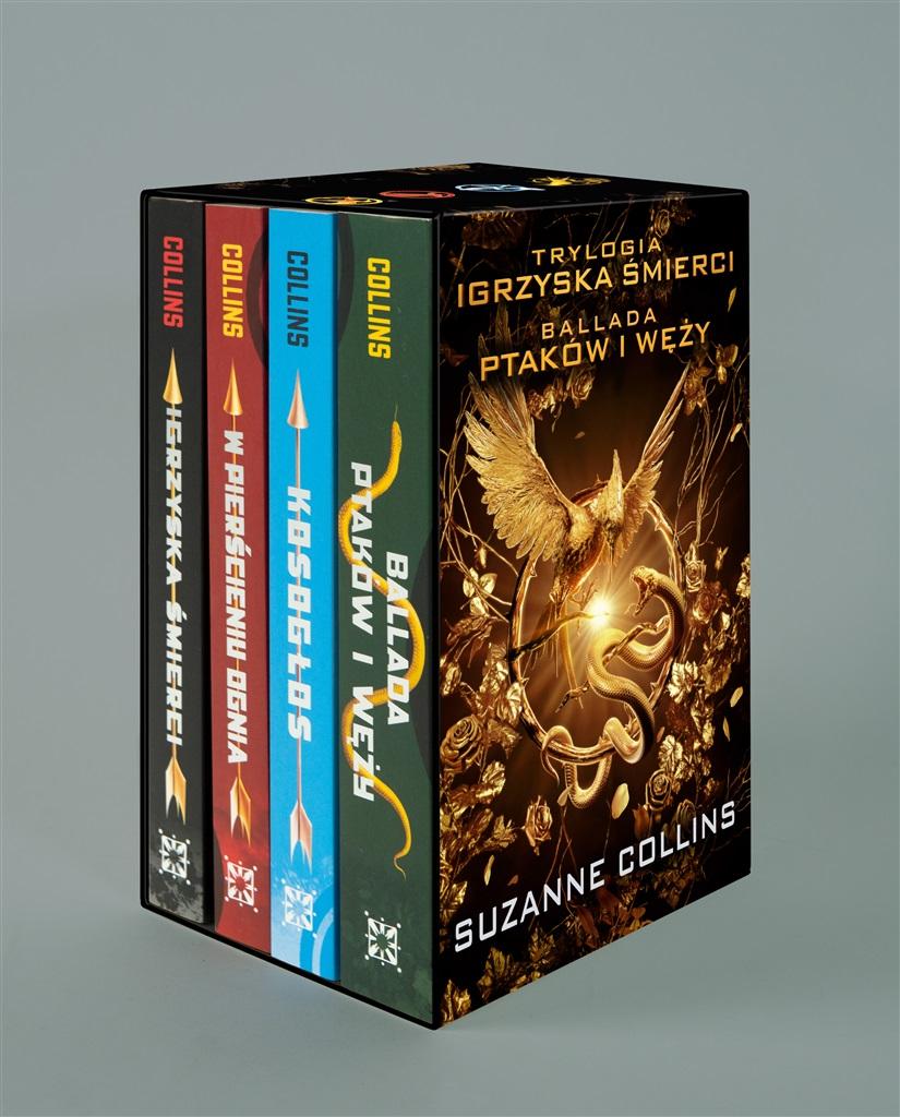 Pakiet: Trylogia Igrzyska śmierci ("Igrzyska śmierci", "W pierścieniu ognia", "Kosogłos") oraz prequel "Ballada ptaków i węży" to zapakowany w pudełko zestaw czterech części bestsellerowej powieści science-fiction dla młodzieży autorstwa Suzanne Collins.