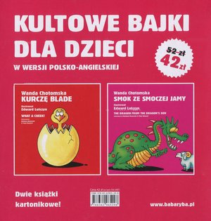 Ekskluzywny pakiet dwóch książek kartonikowych Wandy Chotomskiej oraz Edwarda Lutczyna w wersji polsko-angielskiej. Pozycje obowiązkowe w bibliotece każdego dziecka - małego i dużego!KURCZĘ BLADE (What a cheek!) Wandy Chotomskiej z kultowymi już ilustracjami Edwarda Lutczyna to dla wielu niezapomniana książka z dzieciństwa!SMOK ZE SMOCZEJ JAMY (The dragon from the dragon's den) to historia żarłocznego Smoka Wawelskiego i Szewczyka Dratewki spisana przez Wandę Chotomską, uwielbianą przez dzieci autorkę kilkuset wierszy i bajek. Historię po mistrzowsku zilustrował Edward Lutczyn i tak powstała książka niezapomniana!Niezwykle udanego tłumaczenia wierszy Wandy Chotomskiej dokonali: Tony Howard i Barbara Bogoczek.