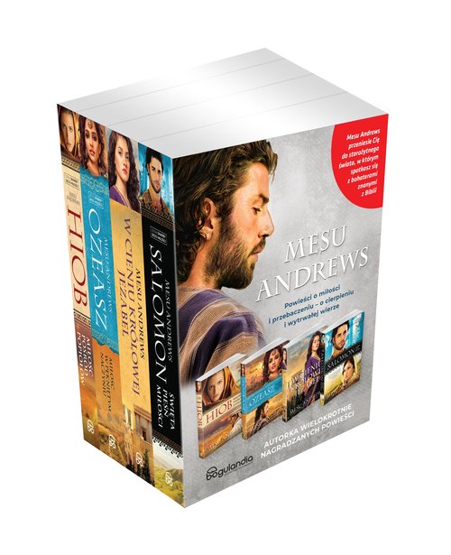 Mesu Andrews - tworzy własną, pełną uczuć i zamętów, wersję opowieści o Hiobie. Łącząc historię bohatera z członkami plemienia braci Ezawa i Jakuba, autorka budzi do życia tę znaną biblijną historię o cierpieniu i wytrwałej wierze, wzbogacając ją o romans. Inne tytuły serii "Królowie i Prorocy": "Dziedzictwo Izajasza", "Córka Izajasza", "Ogień i lwy", Seria "Skarby Nilu": "Miriam", "Córka Faraona", Seria "Skarby Jego miłości": "Hiob. Miłość pośród popiołu", "Ozeasz, Miłość w pękniętym naczyniu", "Salomon, Święta pieśń miłości", "W cieniu królowej Jezabel" oraz "Żona Potyfara"
